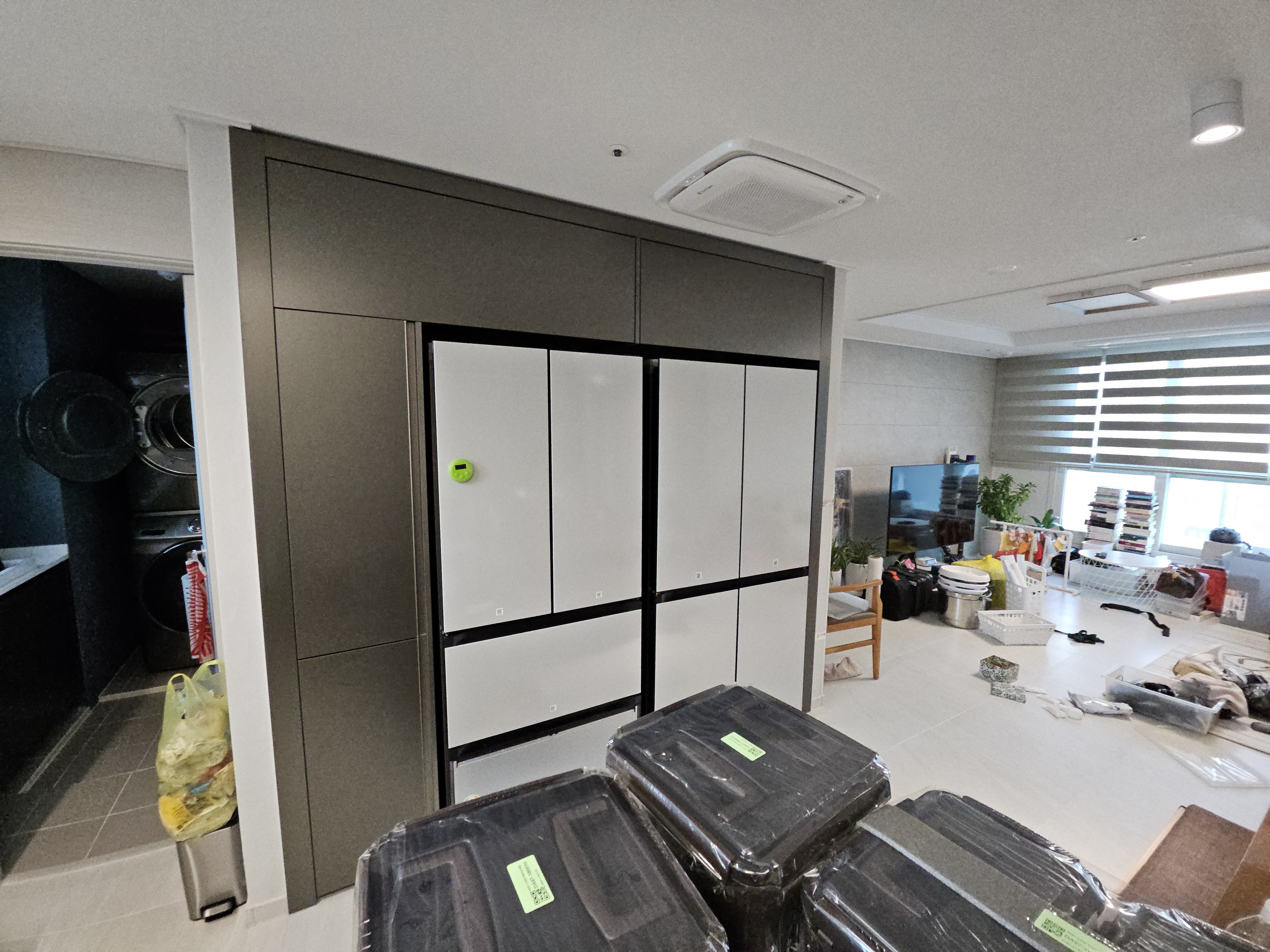 고객님께서 이사를 와서 김치냉장고가 냉장고장에 들어가지 않아 당황했는데 이렇게 깔끔하게 작업해줘서 고맙다고 좋아하셨습니다. 냉장고와 김치냉장고를 나란히 놓거나 이렇게 냉장고가 들어가지 않는 경우 홈편한세상에 연락을 주시면 최대한 해결해 드리도록 하겠습니다.