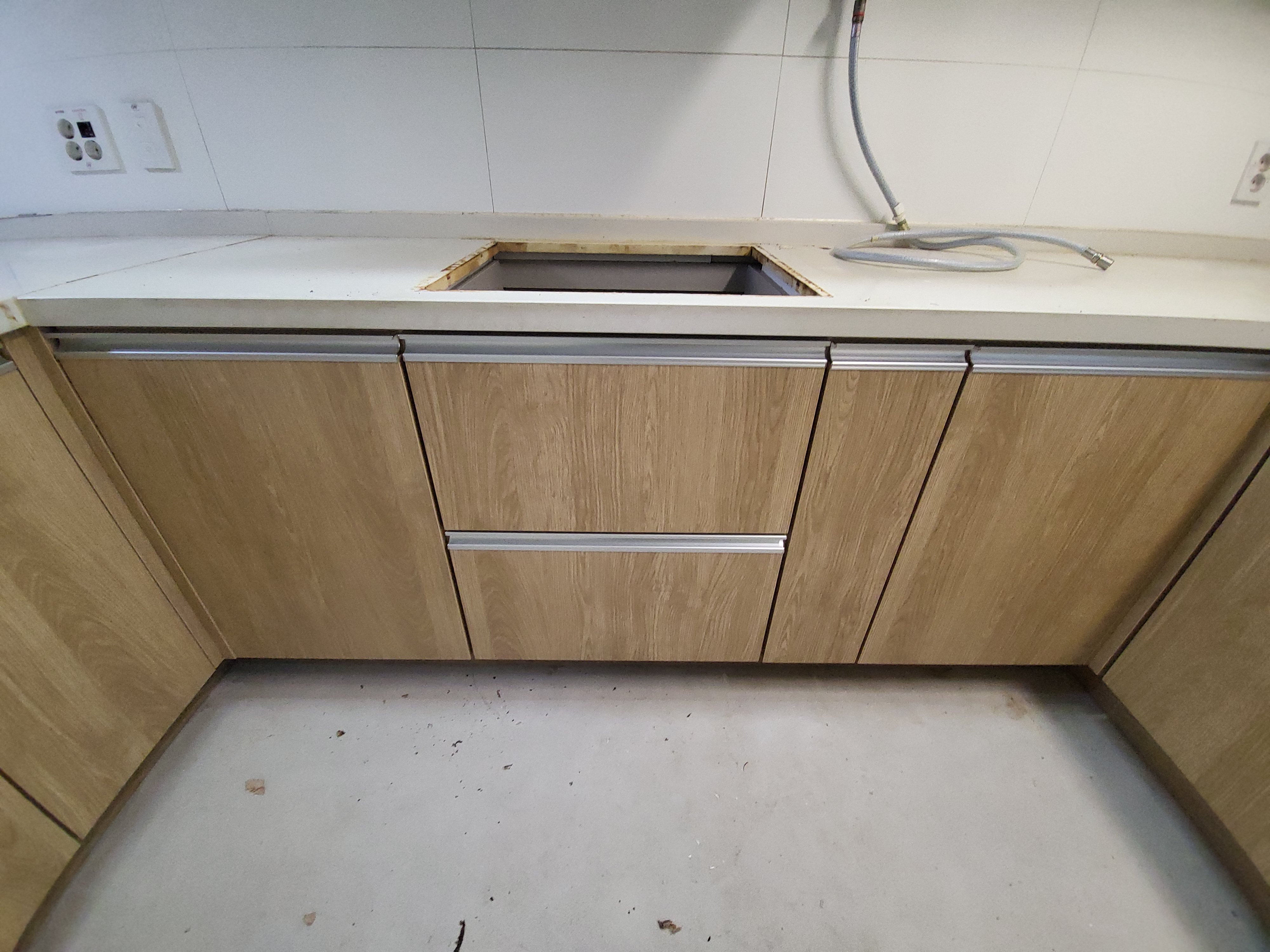 오븐장은 철거하고 2단 서랍장으로 설치하였습니다. 오븐을 사용하지 않으면 서랍장이나 하부장으로 제작해서 설치하면 수납공간으로 활용할 수 있습니다.